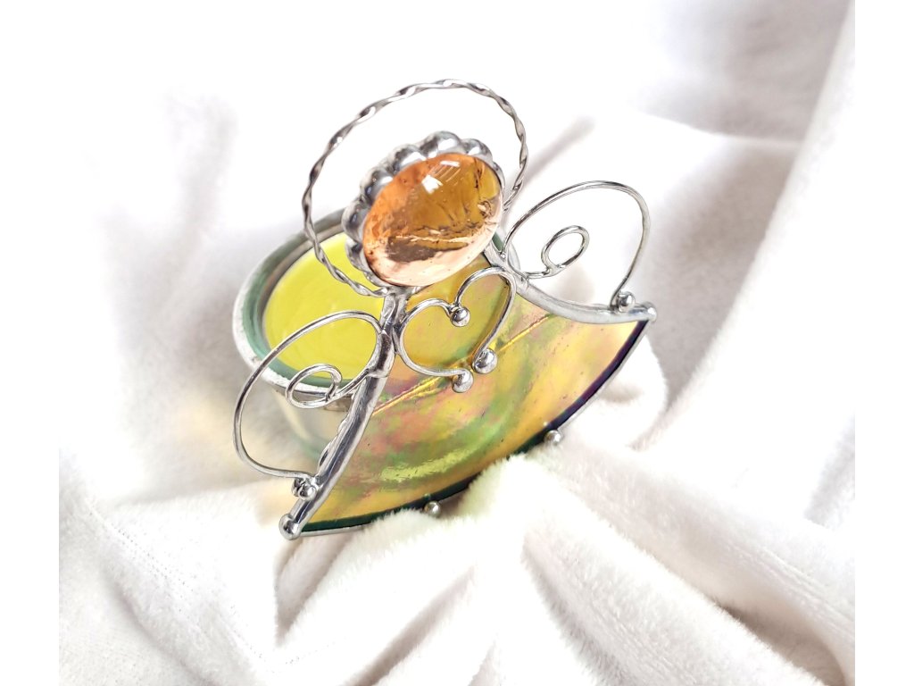 Anděl svícen vitráž (žlutá) 75 mm