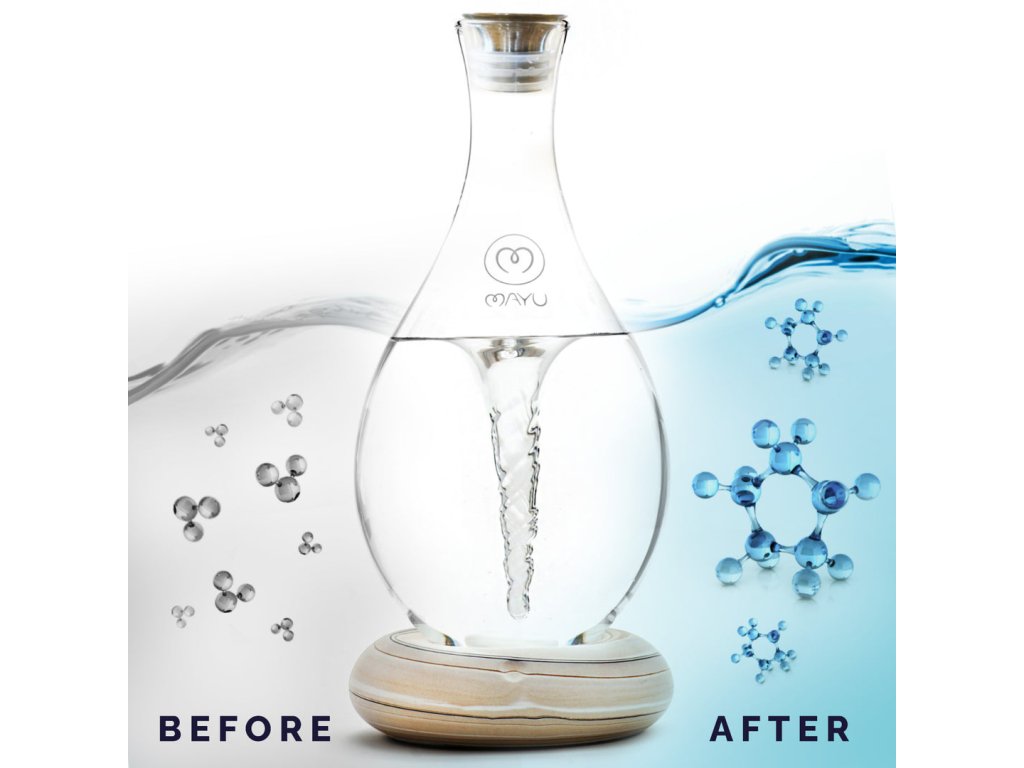 Karafa MAYU využívá přirozenou sílu spirálového pohybu (imploze nebo víru), která se nachází v celém vesmíru. Výsledkem je osvěžení, okysličení, vyvážení a omlazení vody, takže voda lépe chutná a hydratuje, přesně tak, jak to příroda zamýšlela.