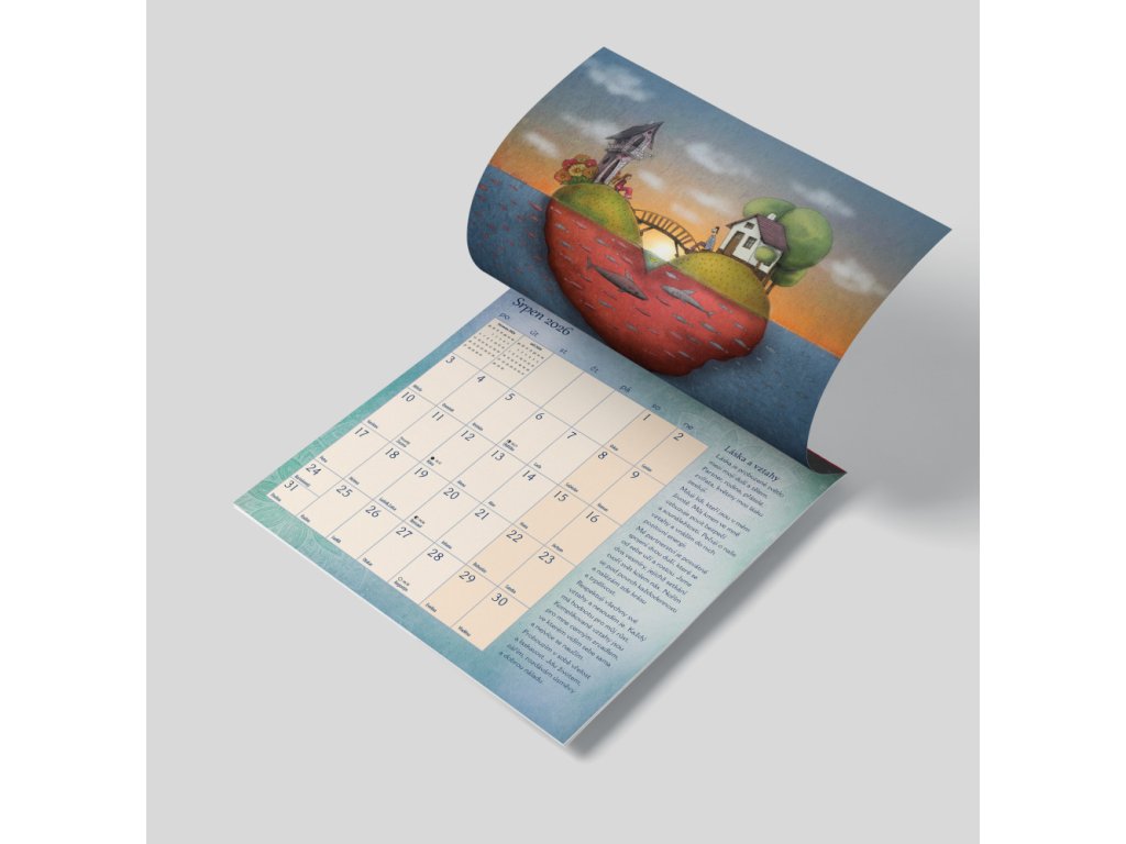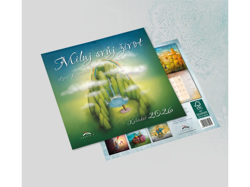 Nástěnný kalendář Miluj svůj život 2026 s motivačními texty a ilustracemi Lucie Ernestové.