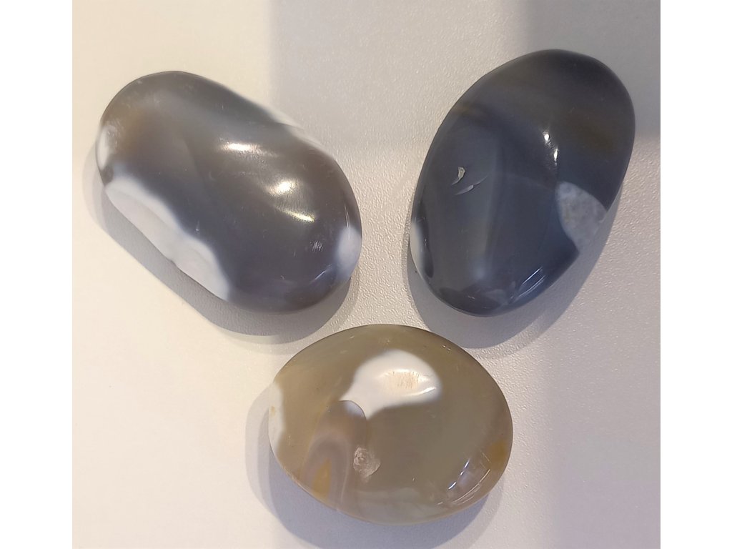 Achát dodává citovou, tělesnou a rozumovou rovnováhu, podporuje sebedůvěru a napomáhá sebepoznání, posiluje soustředění, dodává odvahu a upřímnost vůči nám samým. Pomáhá překonávat negativní pocity, zahořklost, vnitřní zlobu, odstraňuje vnitřní napětí, navozuje pocit bezpečí a jistoty, posiluje lásku a dodává odvahu k hledání lásky nové, pomáhá při citových zklamáních. Výborný ochranný kámen pro malé děti.