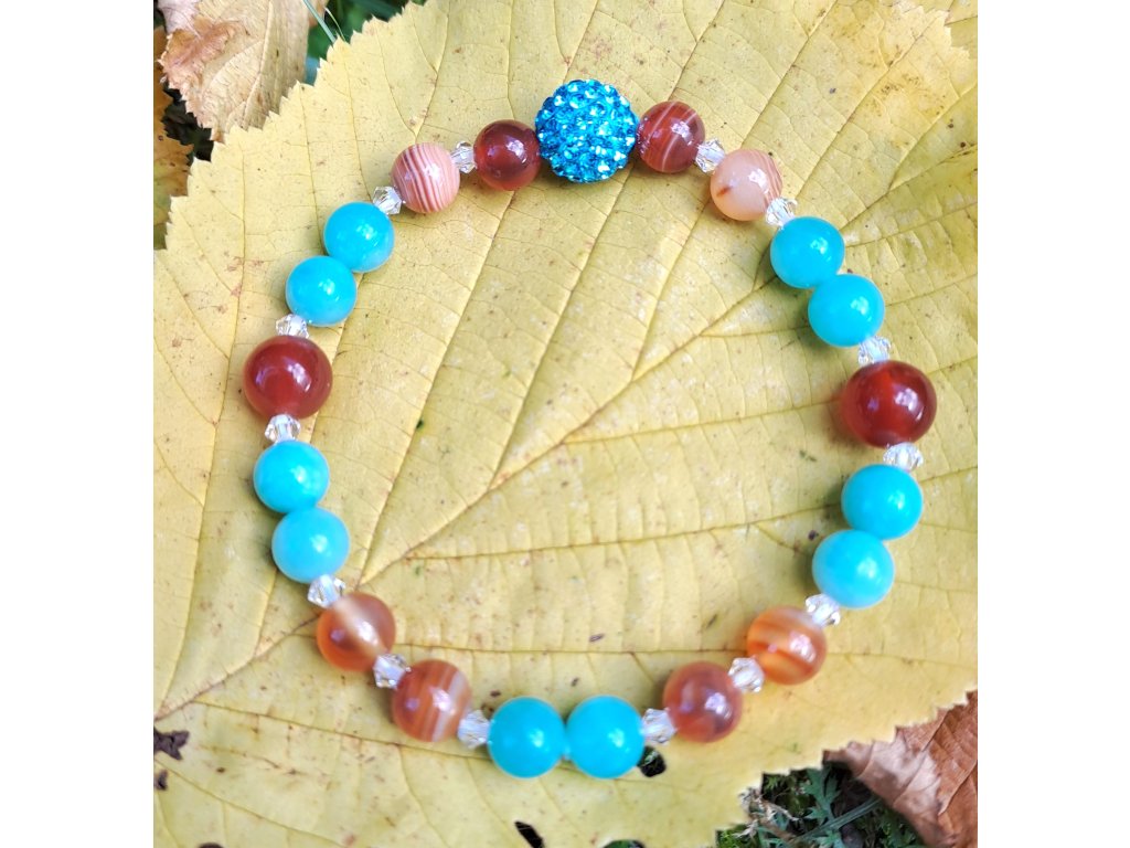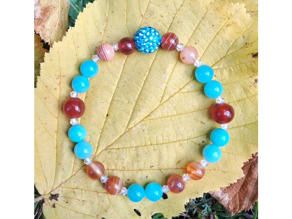 Vnitřní dítě - Karnol+Amazonit+(komponenty Swarovski+Preciosa) náramek