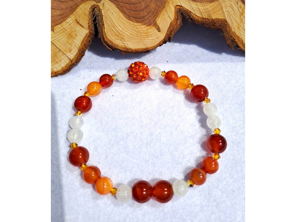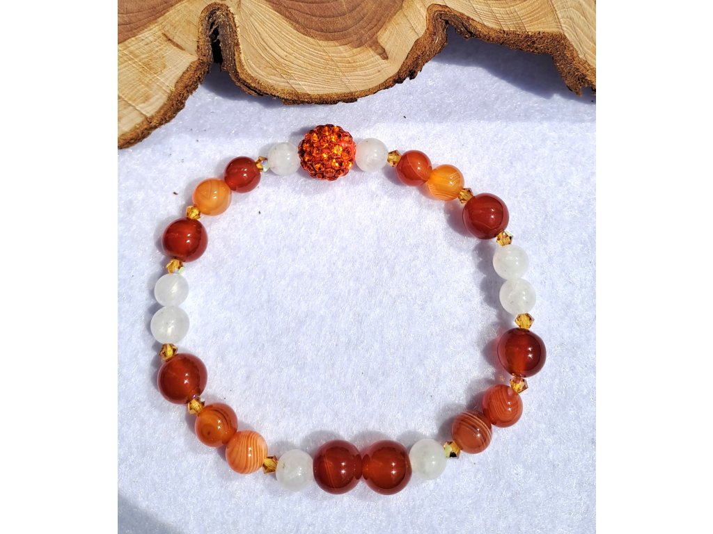 Náramek 2. čakra (sakrální) - Měsíční kámen extra+Karneol (+Swarovski+Preciosa komponenty)