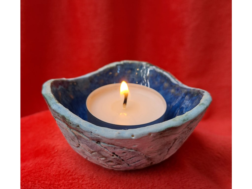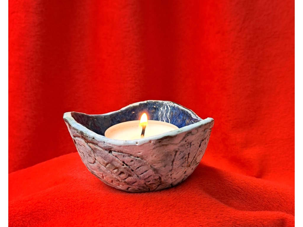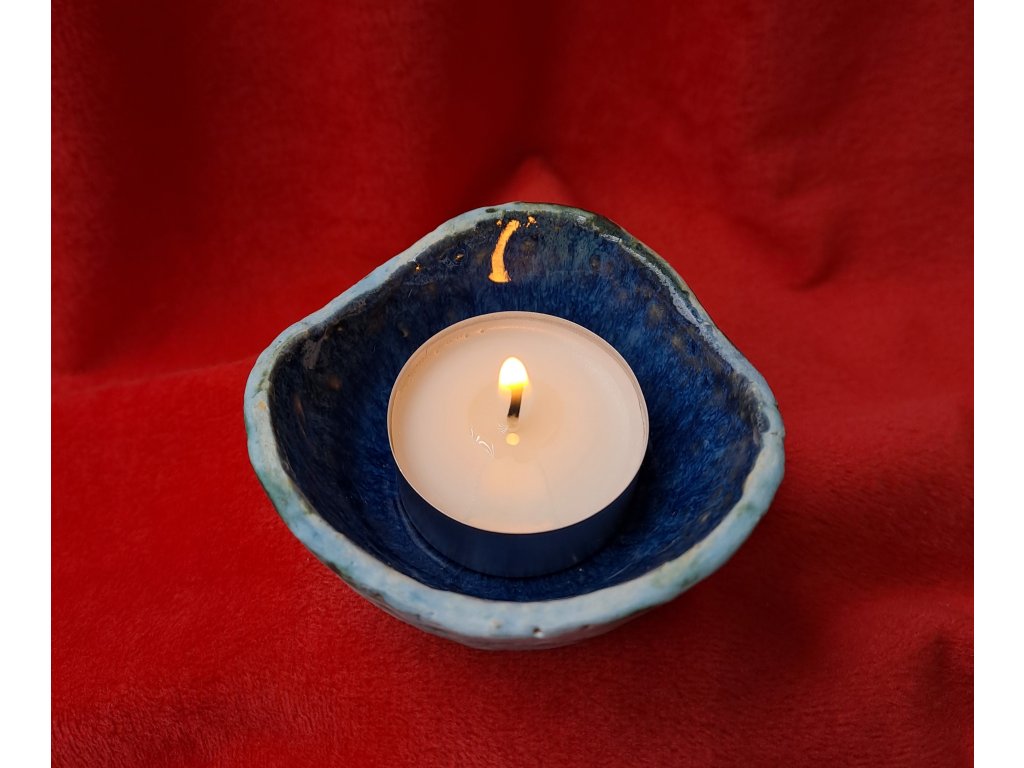 Svícen na čajovou svíčku ručně vytvořený z keramiky - glazura - originál