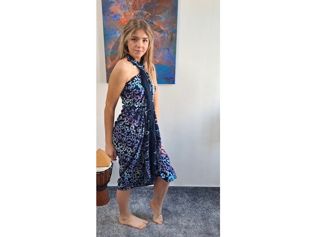 Bali Sarong/Pareo - Lupínky Květů - tmavě modrá fialová