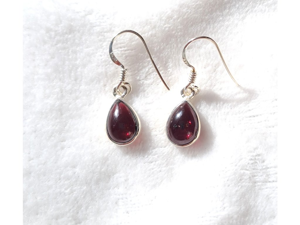 Granát kapky náušnice Ag (reg.č. u Puncovního úřadu 15437)