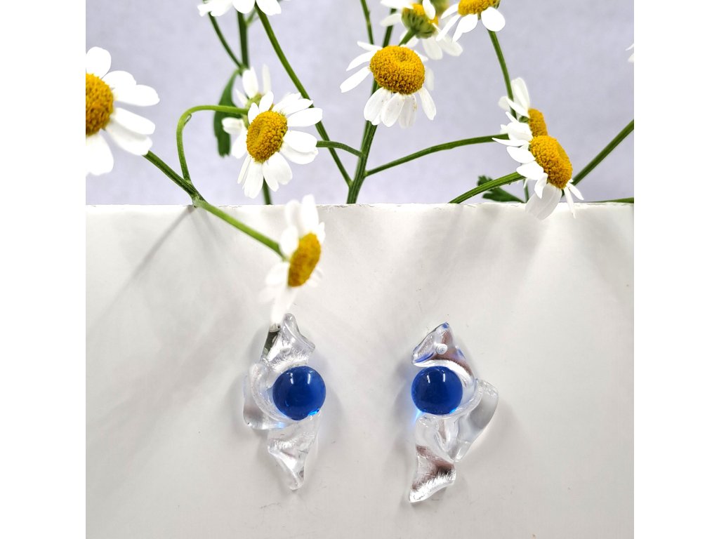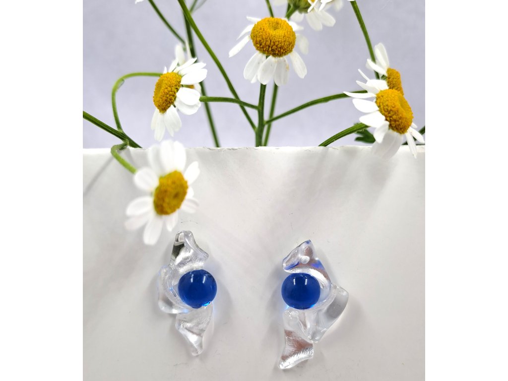 Náušnice ze skla bílo modré (puzety antialergenní nerez ocel)