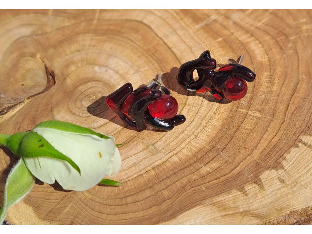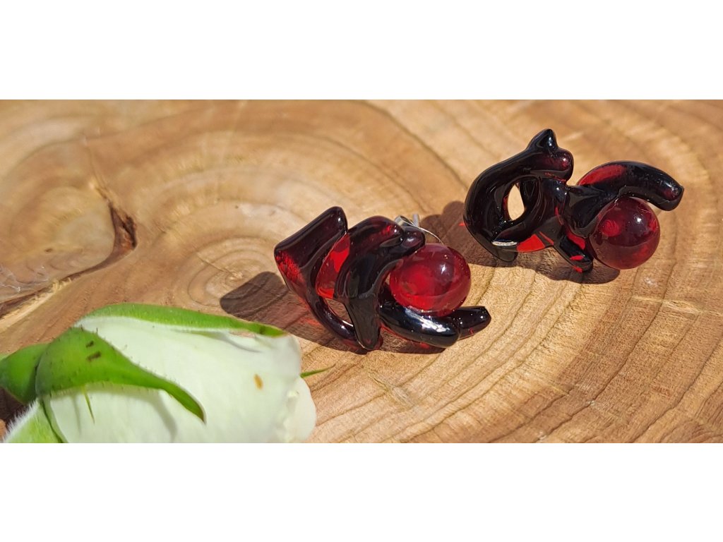 Náušnice ze skla rudé (puzety antialergenní nerez ocel)