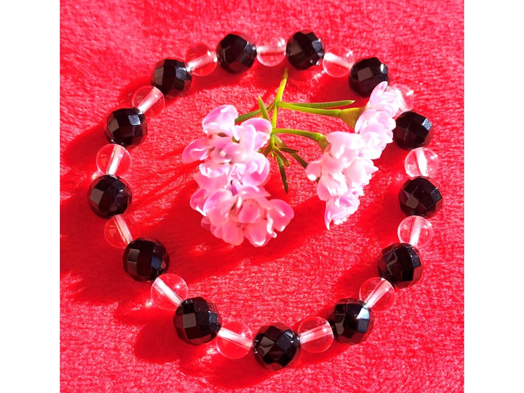 Onyx facetovaný+Křišťál (jin/jang) náramek