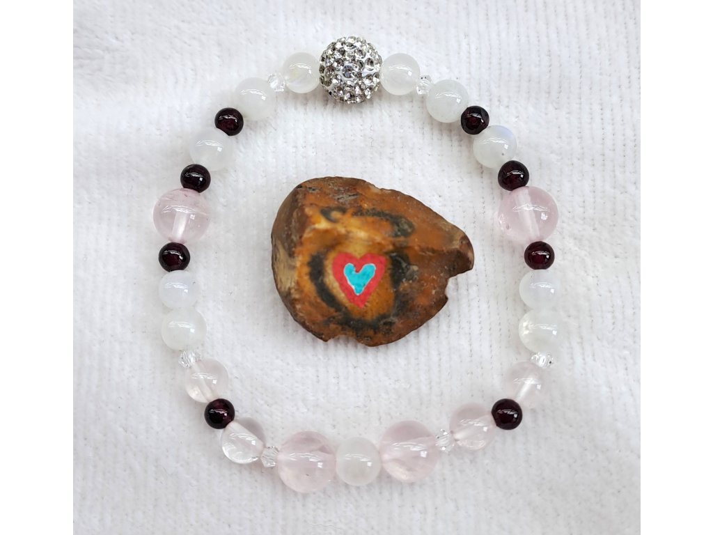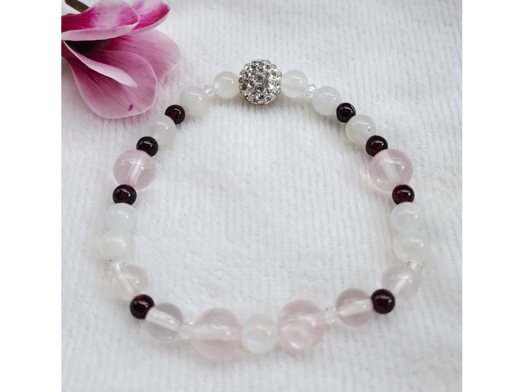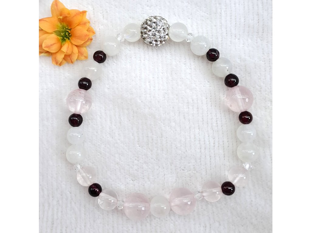 PLODNOST - Měsíční kámen extra+Růženín+Granát (+Preciosa+Swarovski komponenty)