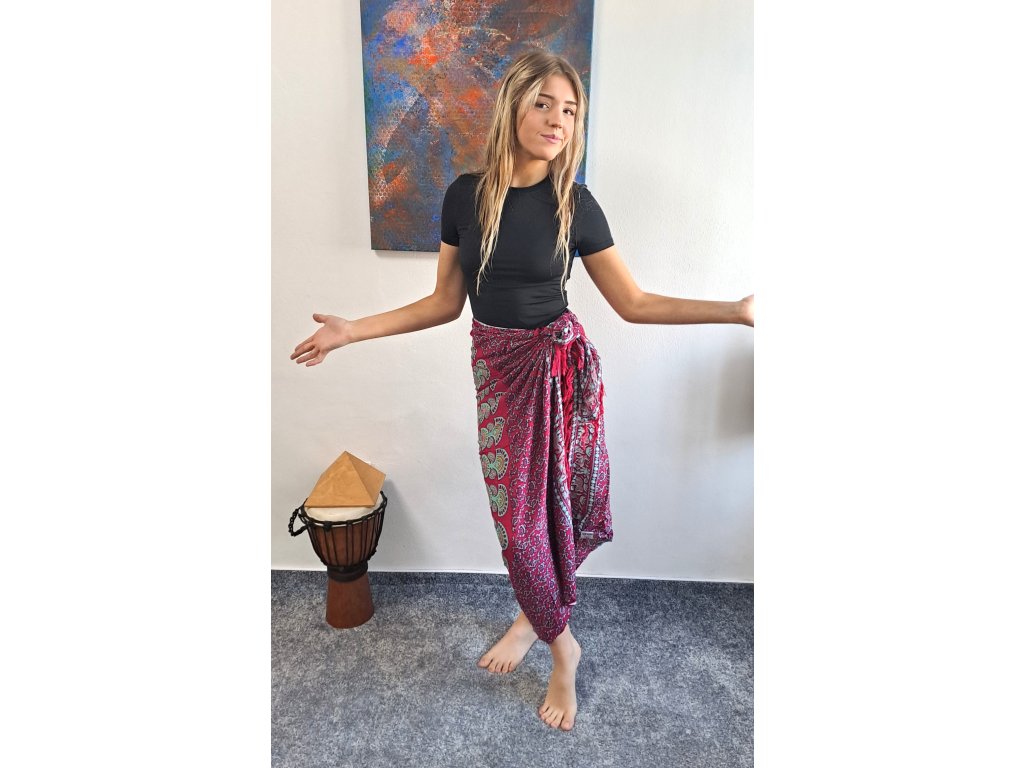 V létě se sarong uplatní jako sukně či šaty, nebo podložka na pláži. V zimě Vás zahřeje jako šála a doma může posloužit jako ubrus, závěs nebo obraz na stěně. Sarong je vyroben z velmi příjemné kvalitní viskózy.