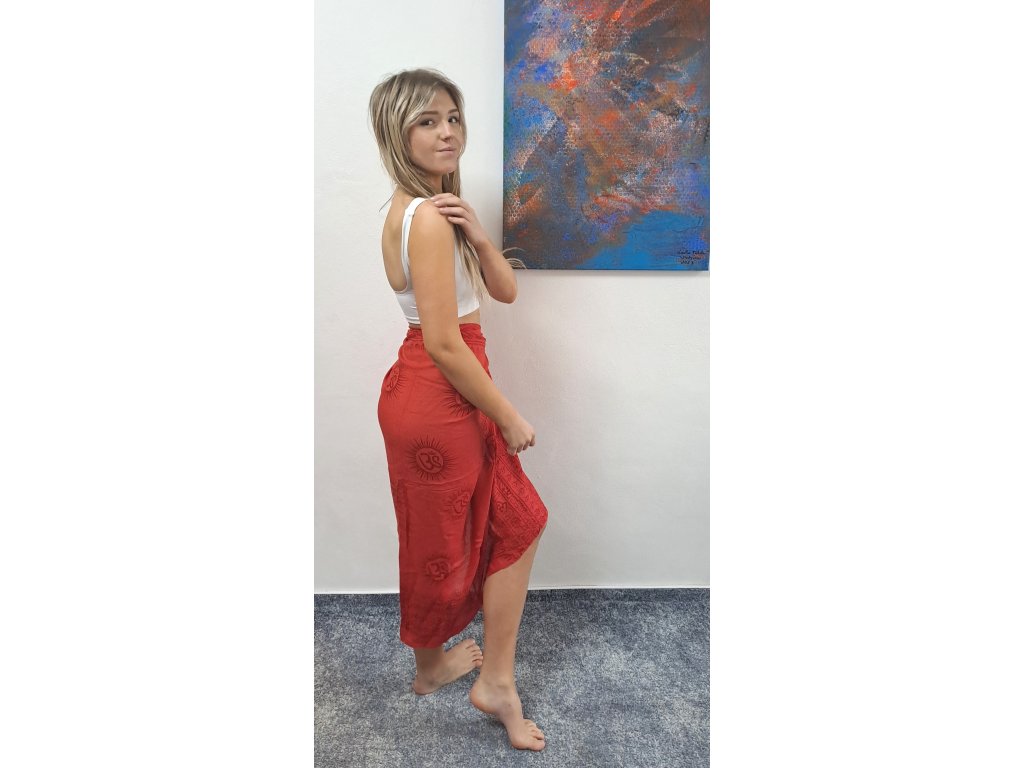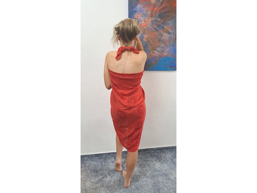 V létě se sarong uplatní jako sukně či šaty, nebo podložka na pláži. V zimě Vás zahřeje jako šála a doma může posloužit jako ubrus, závěs nebo obraz na stěně. Sarong je vyroben z velmi příjemné kvalitní viskózy.