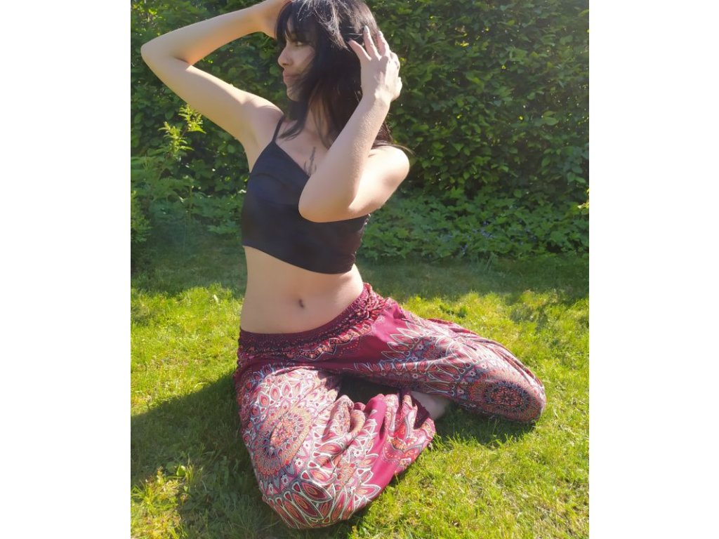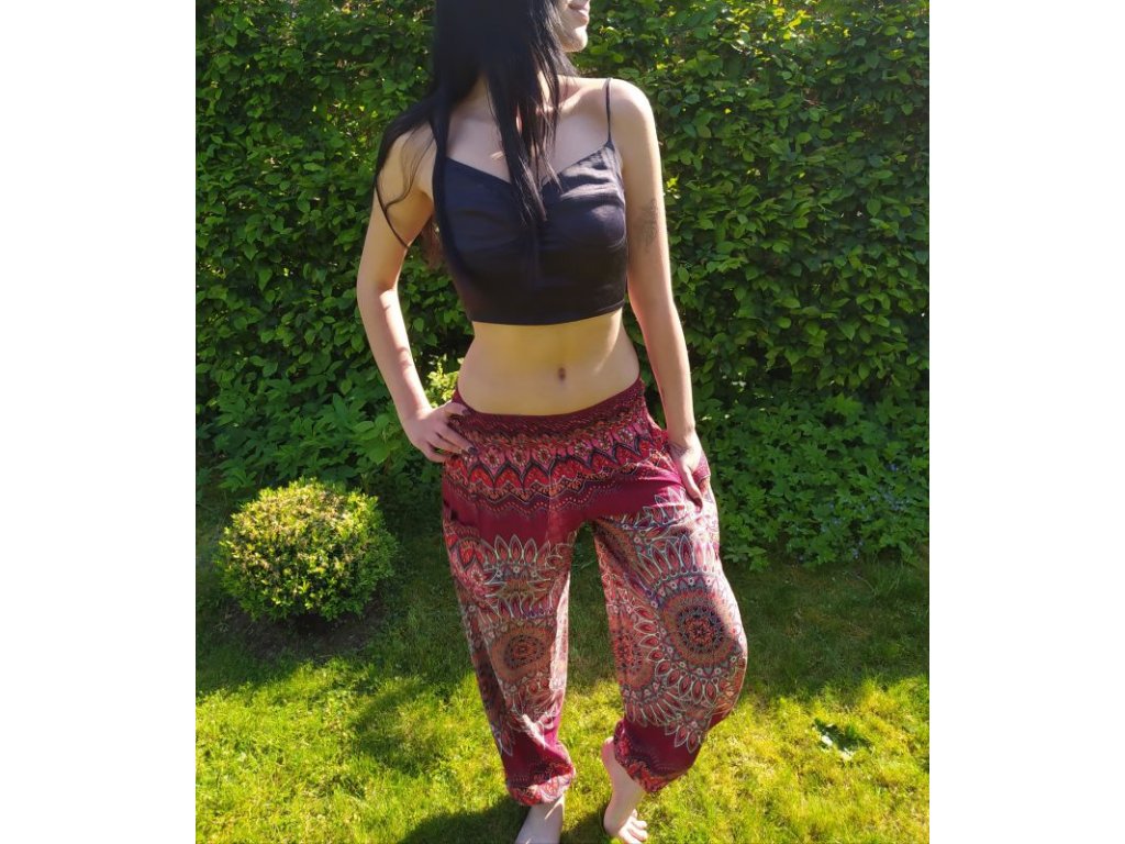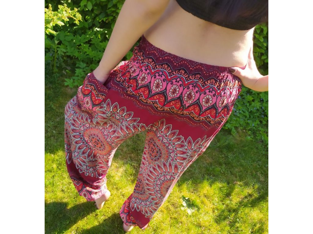 Turecké kalhoty s kapsami. V pase guma pro všechny postavy.